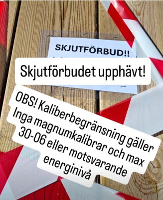Skjutförbudet på inskjutningsbanan är delvis upphävt. P g a materialfel måste vi begränsa tillåtna kalibrar av säkerhetsskäl. Tillåtna kalibrar är de vanligaste jaktkalibrarna såsom 308, 6.5×55 osv. med en maxenergi motsvarande 30-06. Magnumkalibrar är strikt förbjudet. Vi ber er alla … Continued