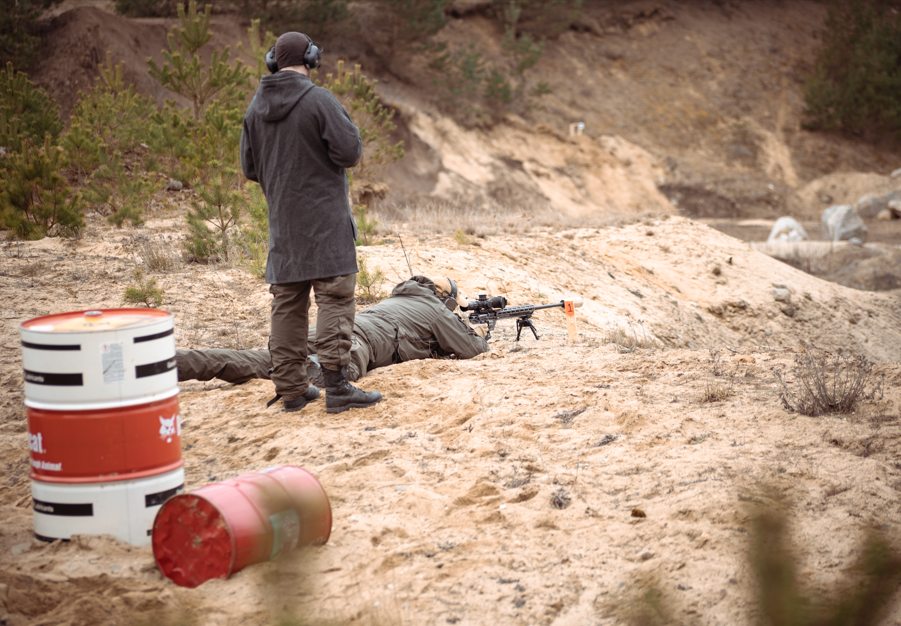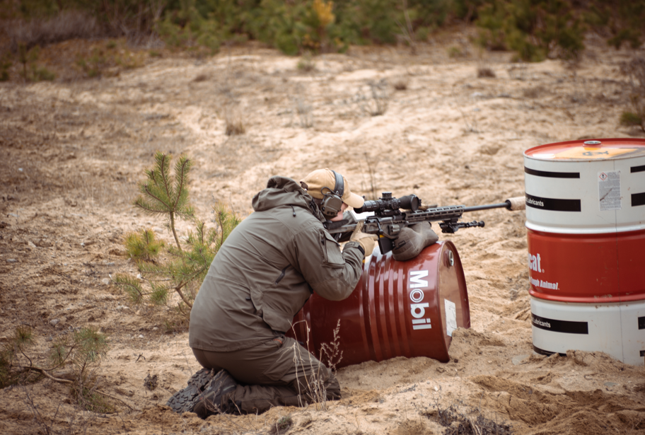 Första dagen började med varning för kraftiga vindar, något vi skulle bli varse under resten av dagen. Efter en del avhopp is sita minuten fich vi ihop tre patruller och spred ut oss över området. Vi hade tre skjutområden med tre stationer vardera, detta för att få ett bra flyt på skyttet. Avstånden varierade mellan 190 och 530m. Stationerna var en blandning av konstruerade props och naturliga stöd som stenar, trädgrenar och kullar.